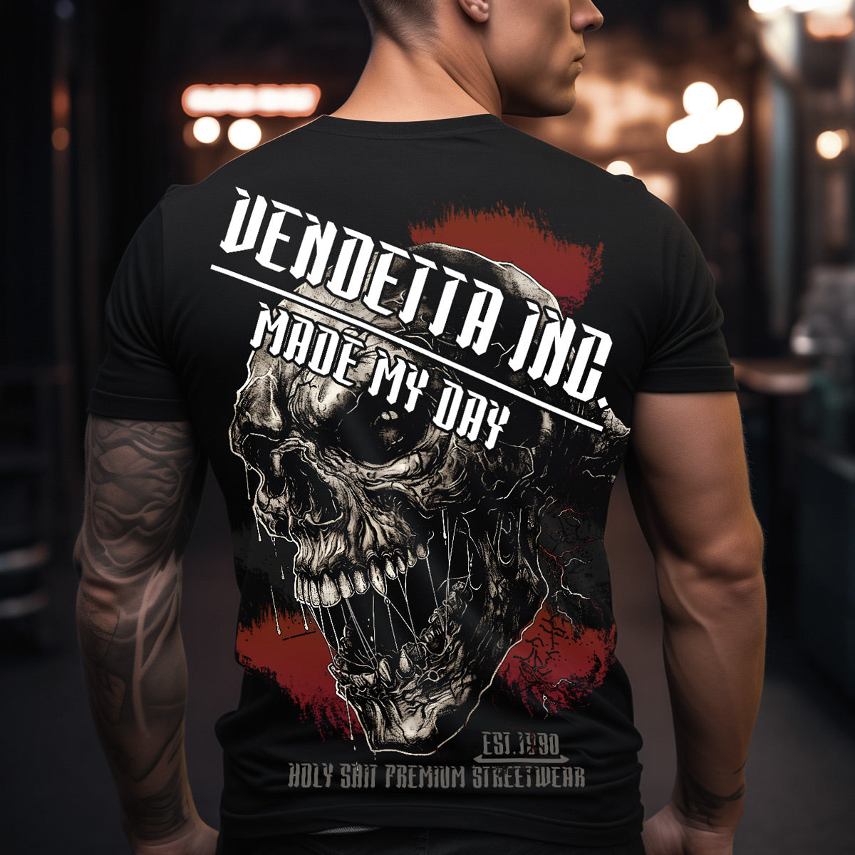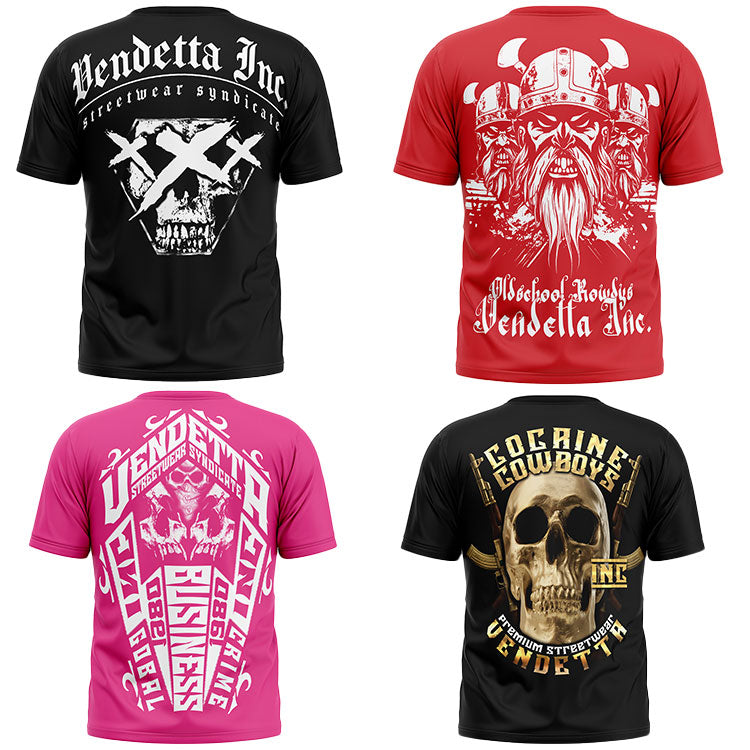 Dem Träger sieht man auf den ersten Blick an, dass er keine Kompromisse kennt. Auf der Frontseite prangt der Schriftzug Vendetta Inc.